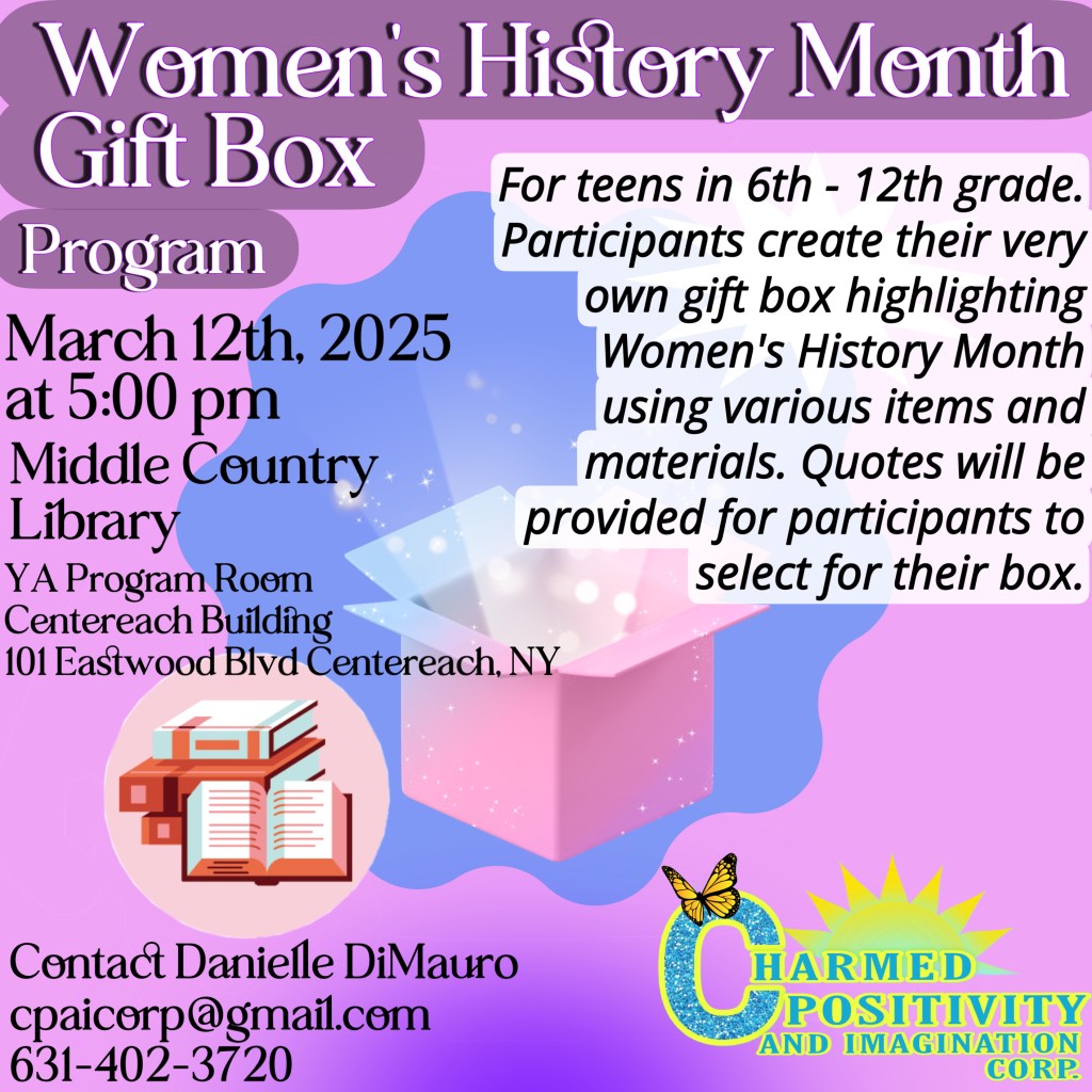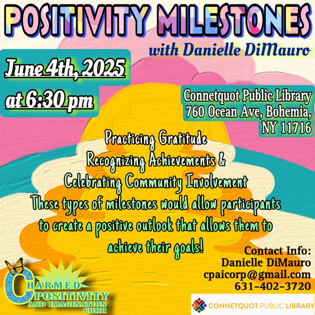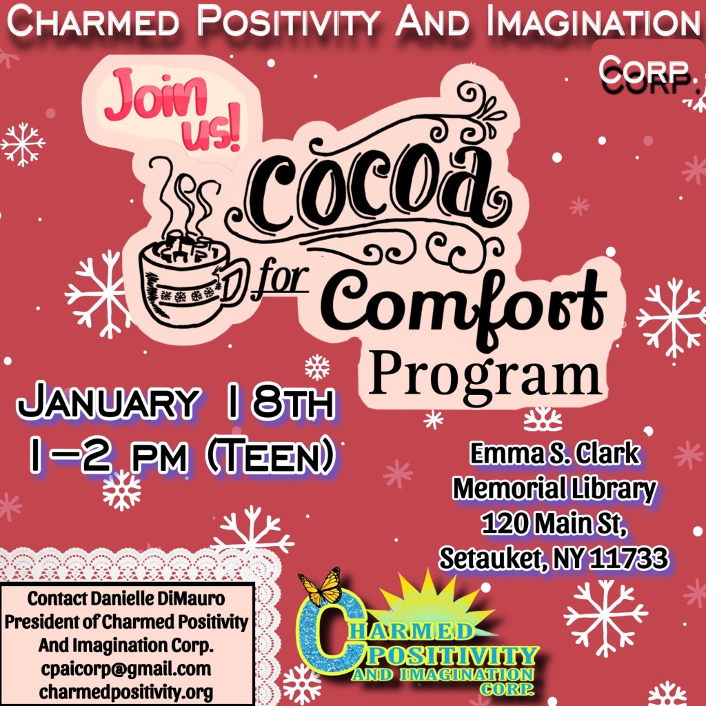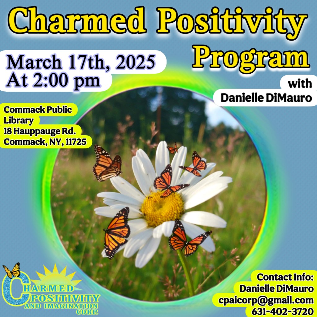 Welcome to our events page! Below you will find upcoming and past events of Charmed Positivity And Imagination Corporation. To view fullscreen, click on each flyer! Note: Some events require an RSVP. Contact us here with any questions!